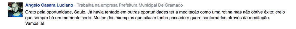 A meditação hoje é um caminho cientificamente comprovado que pode ajudar qualquer pessoa a superar os mais diversos desafios como: a ansiedade, a depressão, a insônia, a falta de concentração, a falta de controle emocional e o turbilhão de pensamentos. Por causa disso, também se mostra muito eficaz na melhora dos relacionamentos, da performance e da produtividade. Este workshop é destinado a qualquer pessoa que deseja superar ou melhorar qualquer um dos aspectos citados acima de forma simples, natural e eficiente.